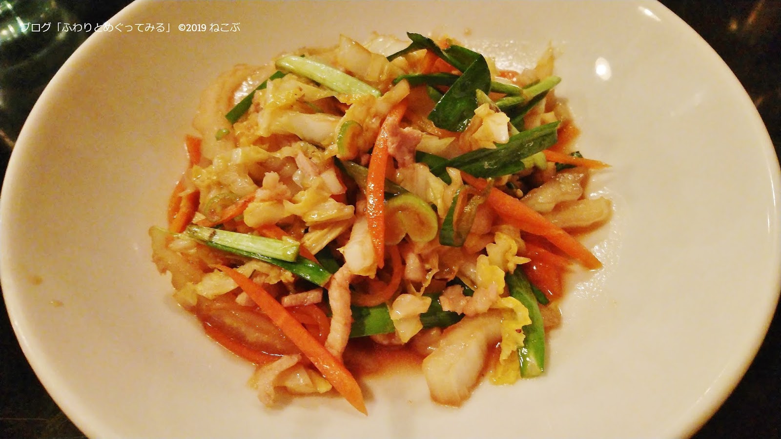 今回来店時のサービス品は「豚肉と白菜の炒め」でした。
