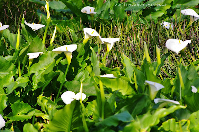 カラーという花ですよネ。私、この花がスキなンだ。画家・鶴田一郎さんの描く美人画の女性みたいなイメージがある。