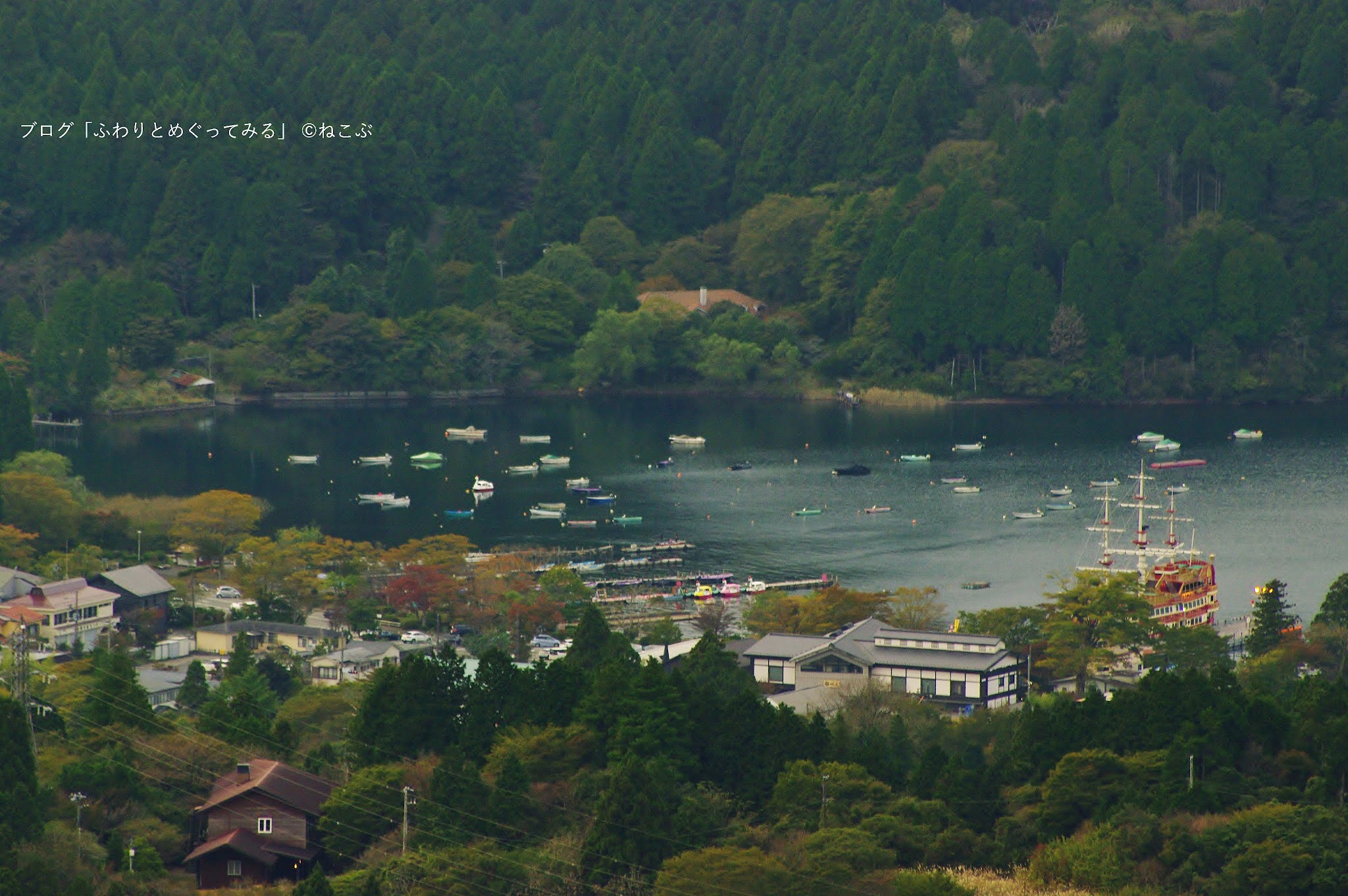 芦ノ湖の遊覧船とか。お客さんそこそこいそう。望遠レンズでこれぐらいまで見ました