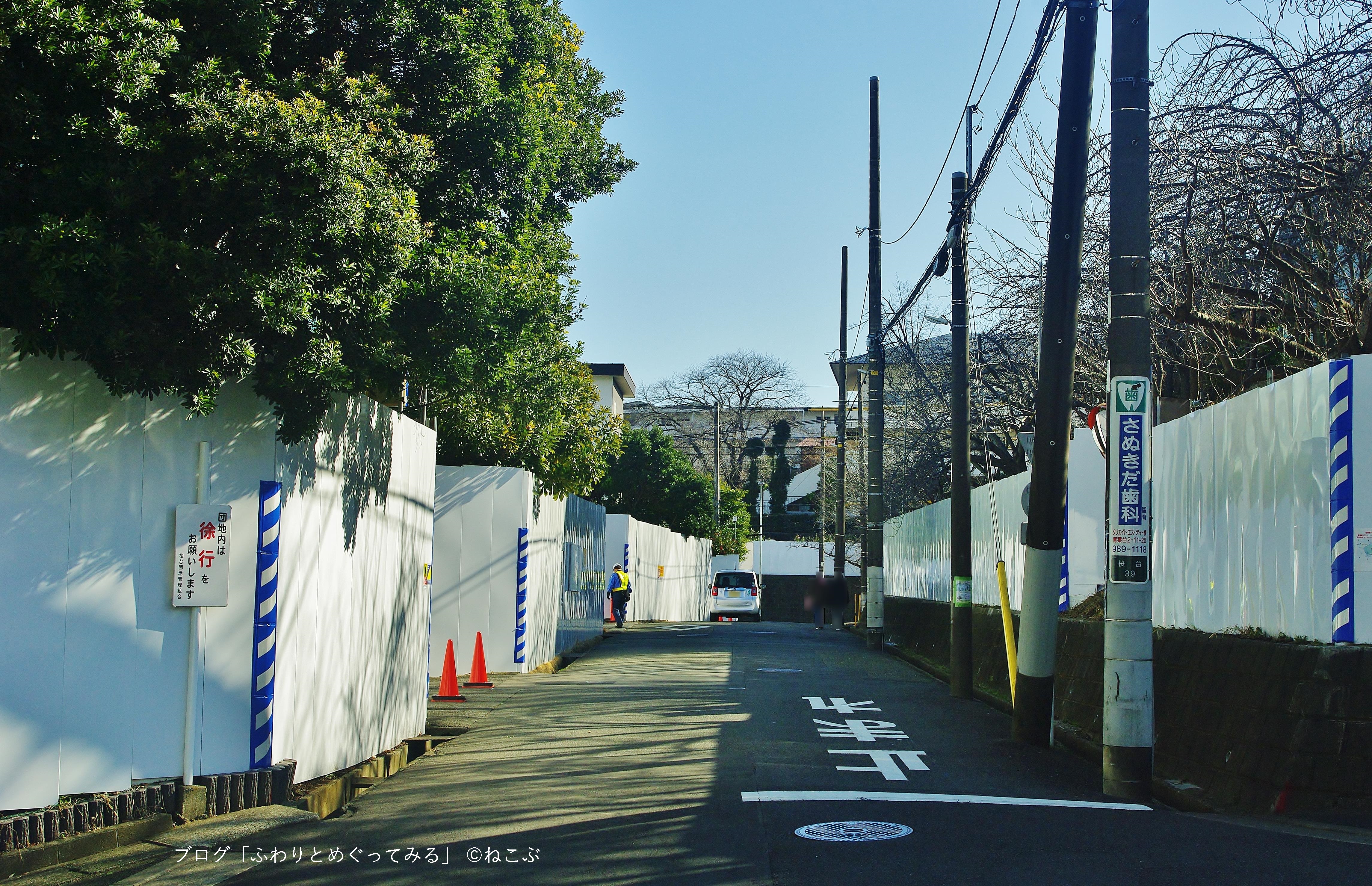 桜台公園ヨコ。桜楽坂より。工事の仮囲いが見えてる。